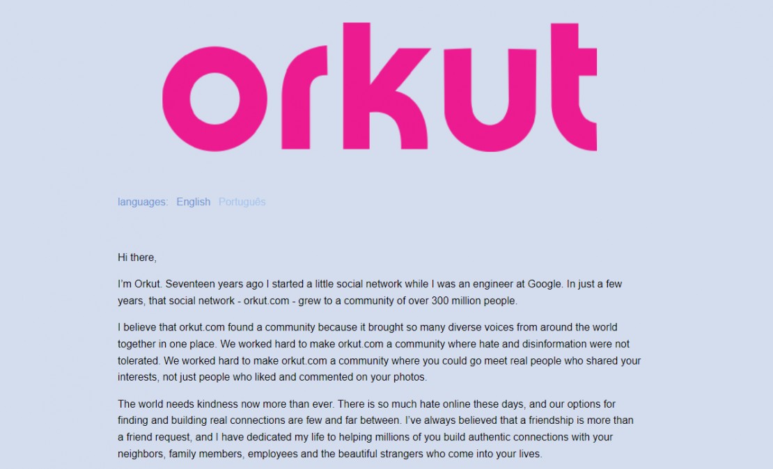 “Acredito no poder da conexão para mudar o mundo. É por isso que eu trouxe o orkut.com para tantos de vocês ao redor do mundo. E é por isso que estou construindo algo novo. Vejo você em breve!”, escreve Buyukkokten.